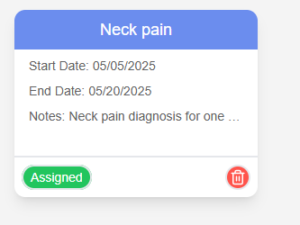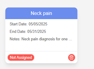 After creating the treatment plan, a “Not Assigned” button will appear. Clicking it will email the full plan details to the patient.