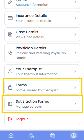 Patients can access these forms from the Profile section of the patient application.